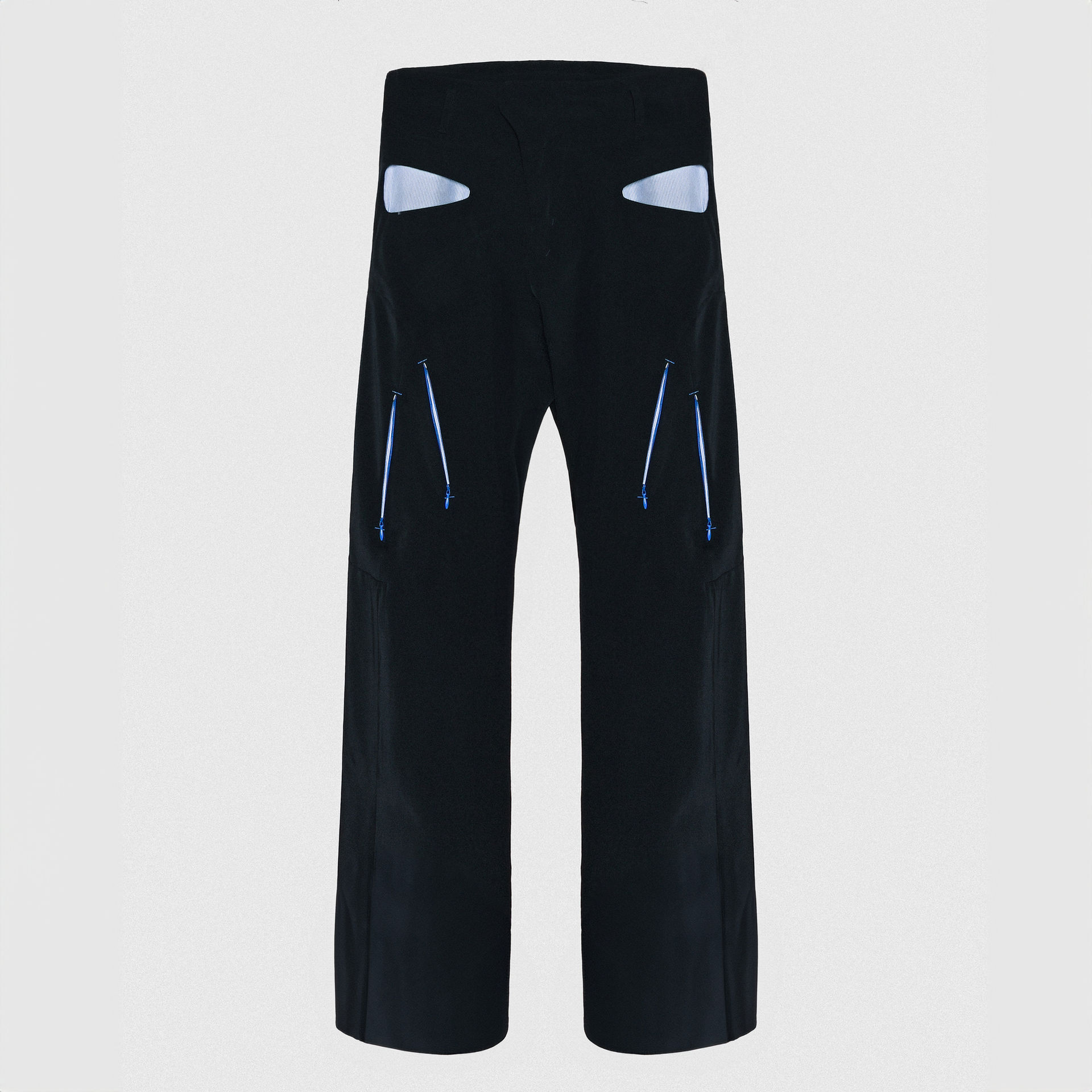 ARC-B010 is constructed using a high-quality breathable stretch poly gaberdine body and contrast blue and white striped 100% cotton pocketing. This silhouette is fitted at the waist and blends to a loose fit at the hem. Waist pockets use an open-face construction while maintaining full functionality. This model features a total of four invisible zipper pockets above the knee. Two on each leg, built in at the seam with contrasting bartacks. The body features a built-in waistband, an asymmetric center front closure, and two on-seam back pockets.